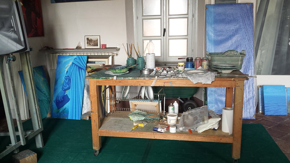 Nel 1996 trasferisce studio e abitazione nella località Palazzo, storica proprietà nella campagna saviglianese, un tempo della famiglia dei Conti di Santa Rosa.