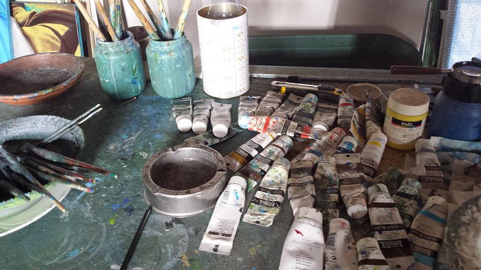 ...ti seguivamo in uno dei tuoi studi, a un metro dal cavalletto e seduti su una qualche vecchia poltrona, con un libro in mano per coprire i periodi morti e avere l'alibi dell'intero pomeriggio...